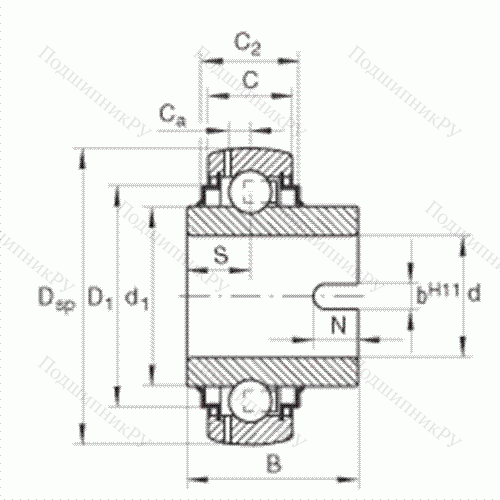 сферическое наружное кольцо, плавающий подшипник, поводковый паз во внутреннем кольце, двусторонние R-уплотнения