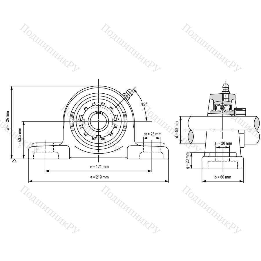 Подшипниковый узел UKP 211 - Вал: 50 мм